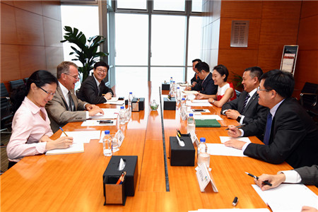 7月30日,集团副总裁、EBET易博贸易总经理迟京涛在福临门大厦会见美国大豆出口协会(USSEC)CEO苏健(Jim Sutter),双方就中国粮食安全政策和大豆贸易等进行了充分的交流和探讨。